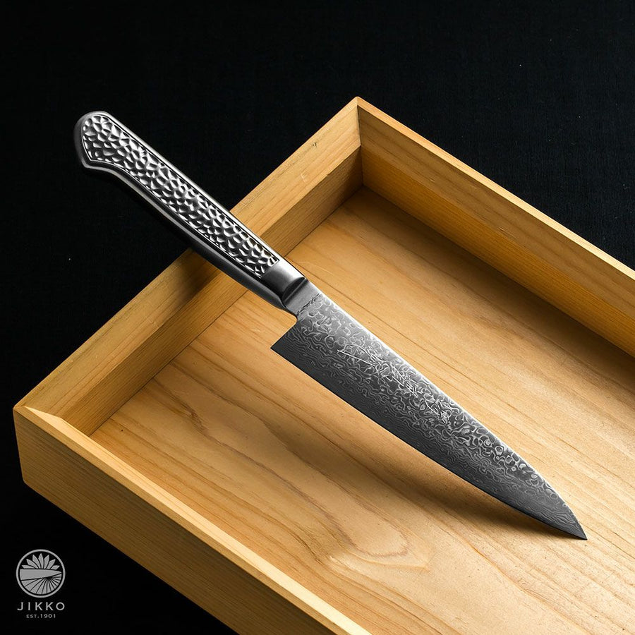 The Never Stain Petty is a Japanese utility knife crafted from SG2 stainless steel, perfect for delicate tasks like cutting fruit, garnishes, or herbs. Lightweight and easy to handle, it offers precise control for detailed work. With its rust-resistant construction and simple maintenance, it’s ideal for cooks who focus on the finer details.